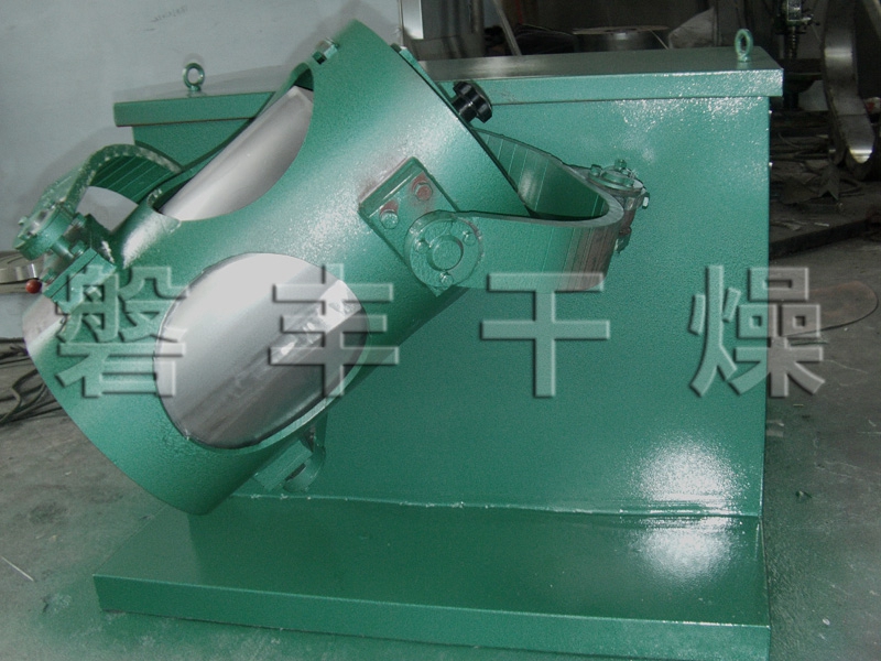 结构:该机由机座、传动系统、电器控制系统、多向运动机构、混合筒等部件组成。与物料直接接触的混合筒采用优质不锈钢材料制造,桶体内外壁均经镜面抛光。